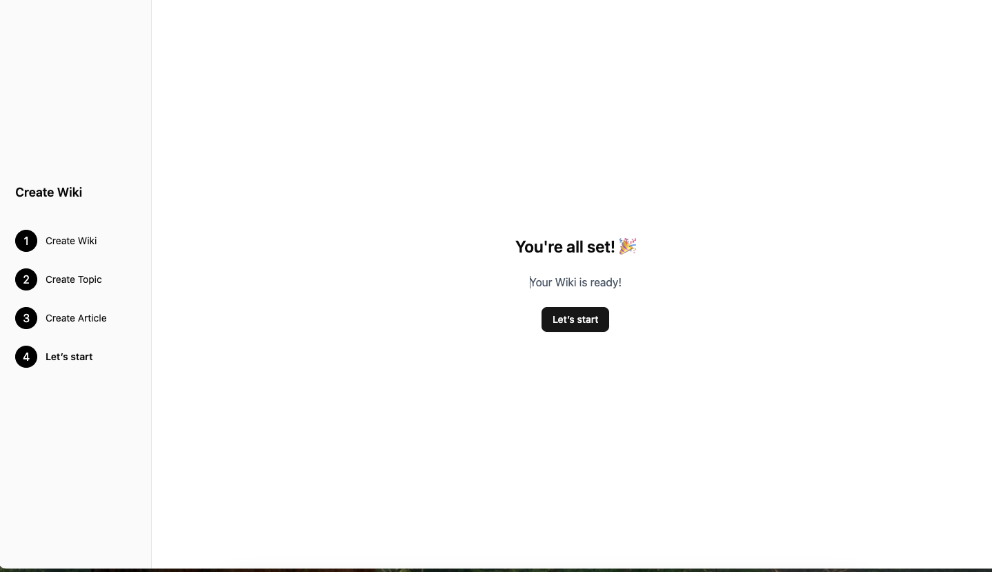 By clicking "Let's start" you will be redirected to the Wiki page.